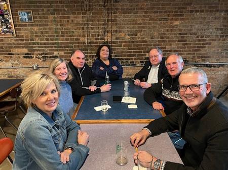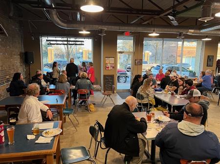 Rotarians meet at River Hoops Brewing for a night of Tacos and Trivia. Fun was had by all at a well-coordinated outing.